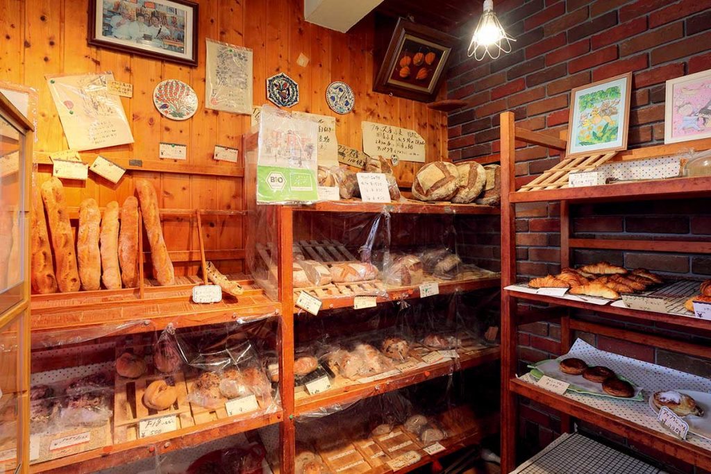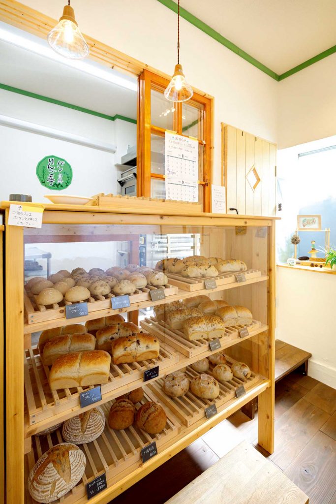 民家を改築した小さなパン屋さん。パンをショーケース越しに選んで購入するスタイル