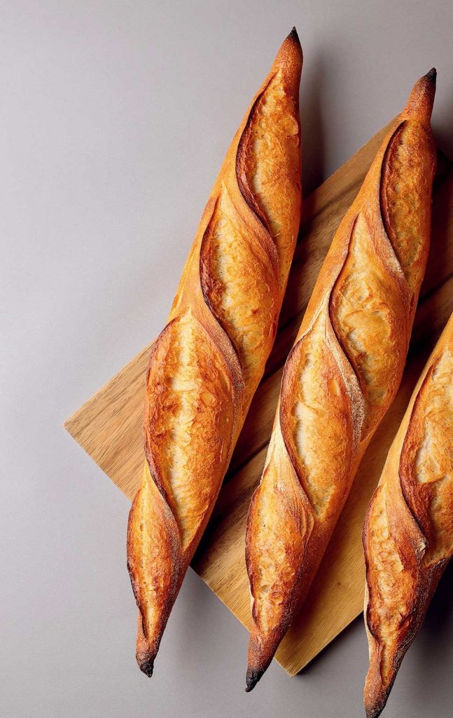 厚めのクラストのバリっとした食感、小麦の深い旨みが特徴の本場流「バゲットモンジュ」(1本・303円)