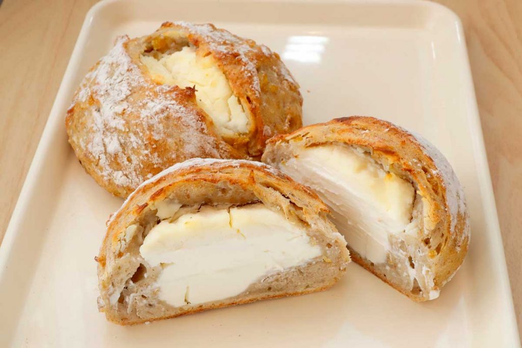 ゆずピールを混ぜ込んだ生地に九州産のクリームチーズをたっぷりと「ゆずとクリームチーズのカンパーニュ」(590円)