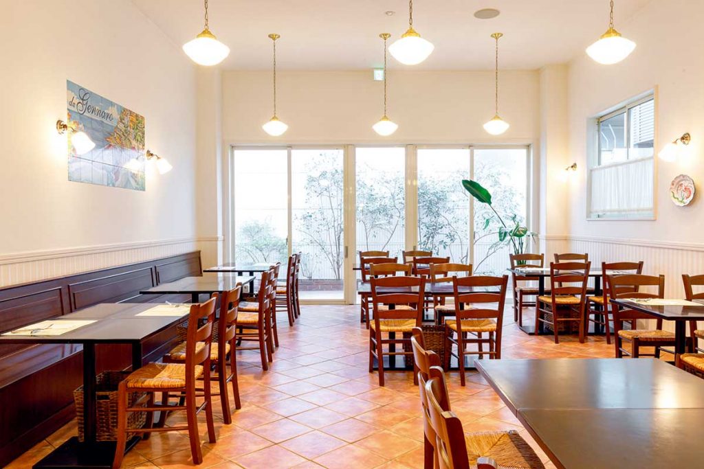 店内を彩るインテリアは、アマルフィ海岸の町ポジターノから仕入れたもの。厨房のブルーの薪窯にも注目してみてくださいね