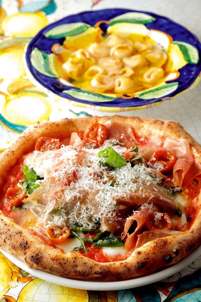 南イタリア料理を楽しめる『da Gennaro』で人気を集めているのが、薪窯で一気に焼き上げるピッツァです。おすすめは、星のような形もユニークな「サン・ジェンナーロ」。マルゲリータをベースに、耳の中にリコッタチーズとサラミを忍ばせたスペシャルメニューです。本場ナポリと同じように熱々なうちにナイフとフォークで切り分けて味わってくださいね。