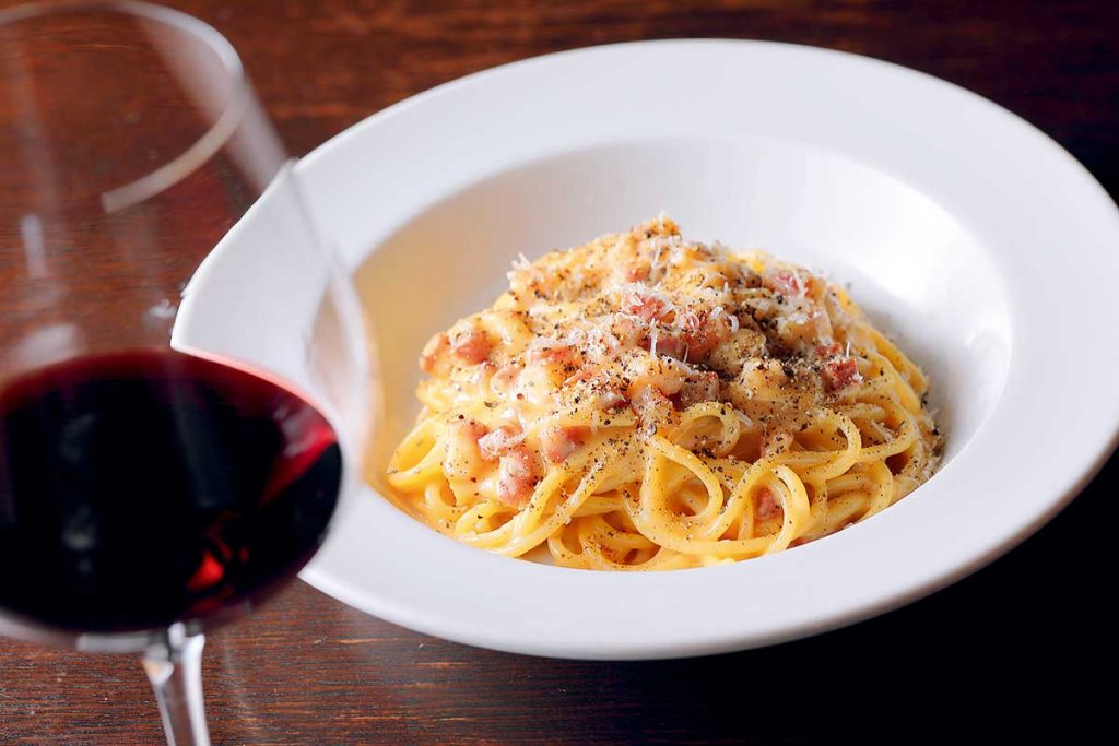 生クリームを使わず全卵で仕立てた「イタリア産パンチェッタのカルボナーラ」