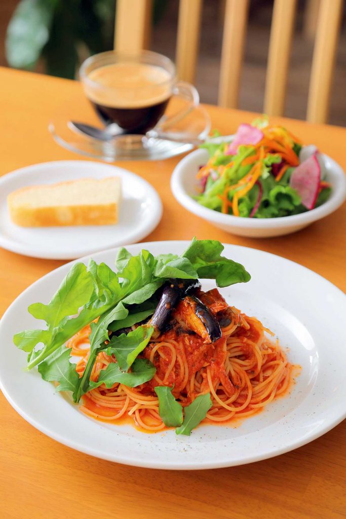 「パスタセットA」(昼限定)。ランチは日替りで2種類のパスタとカレーを用意しています