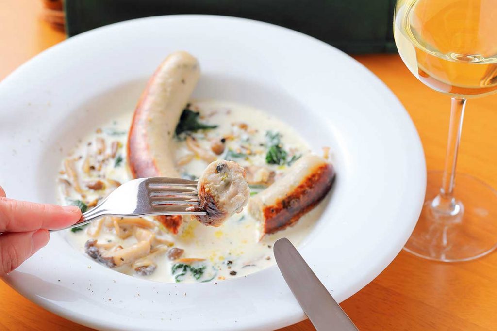 石巻産のカキを練り込んだ自家製の「牡蠣のソーセージ」(夜限定)は必食!