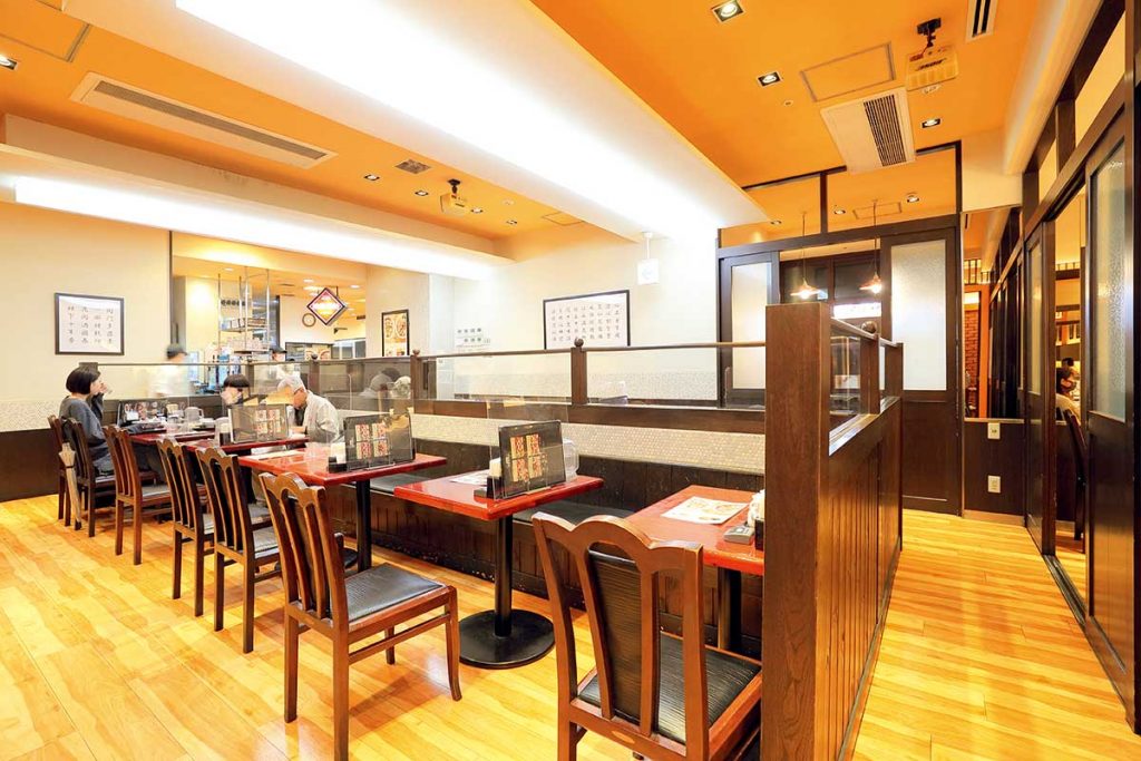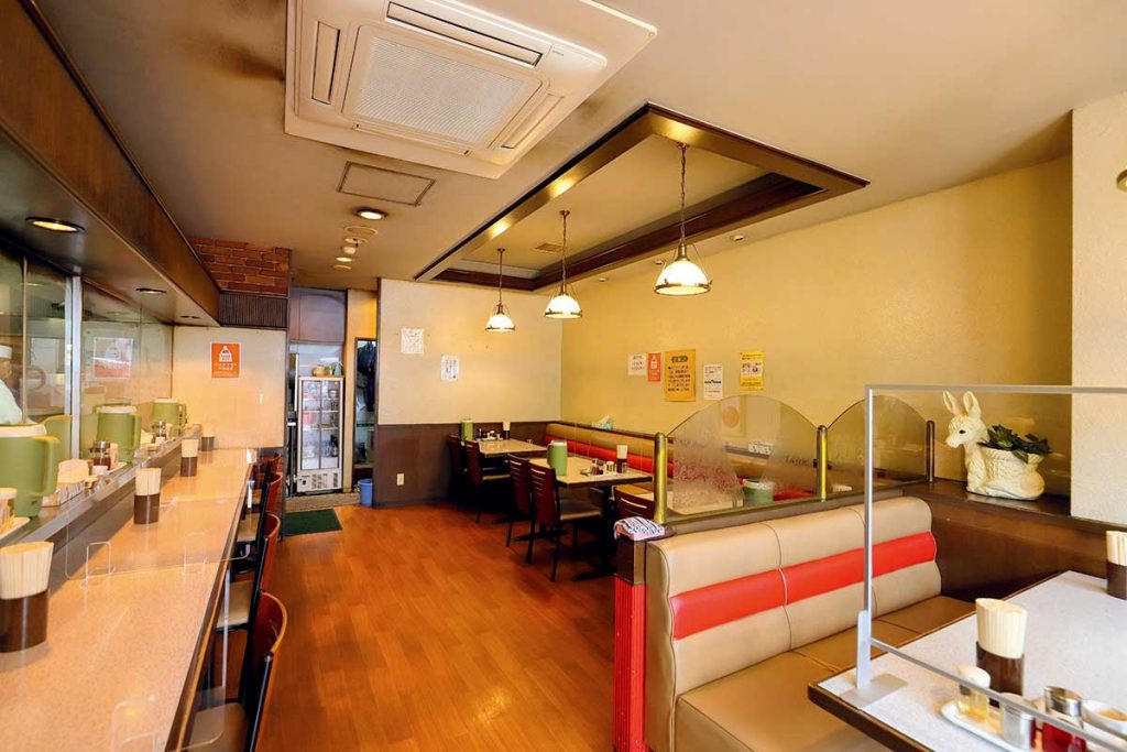 創業50年を超える人気店。カウンターとテーブル席があり、小ぢんまりとした店内はいつも賑わっています