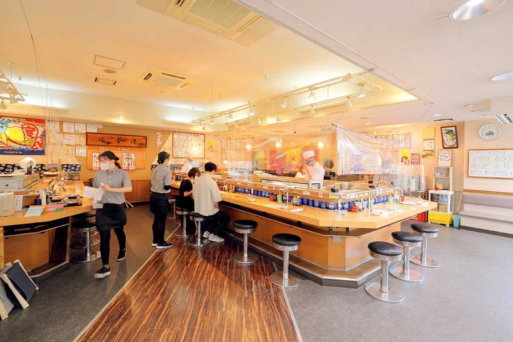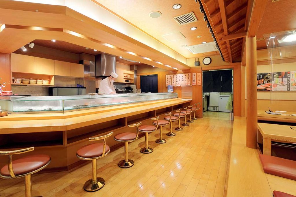 “うまいを安く”をコンセプトに、宮城県を中心に全国展開する寿司店。上質なネタをリーズナブルな価格で楽しめるのは、仕入れの買受人が市場で直接競り落としているから。市場から店舗に直送し、届き次第すぐに板前がさばくというスピード感も鮮度を保つ秘訣です。カウンター席では目の前で板前さんが寿司を握ってくれますよ。