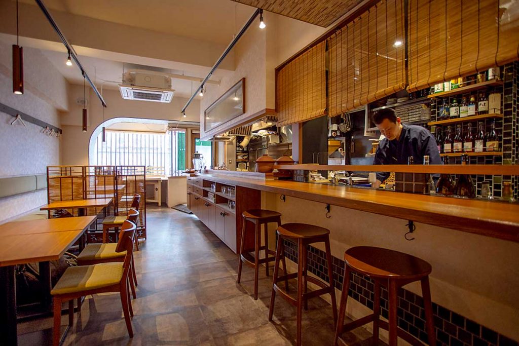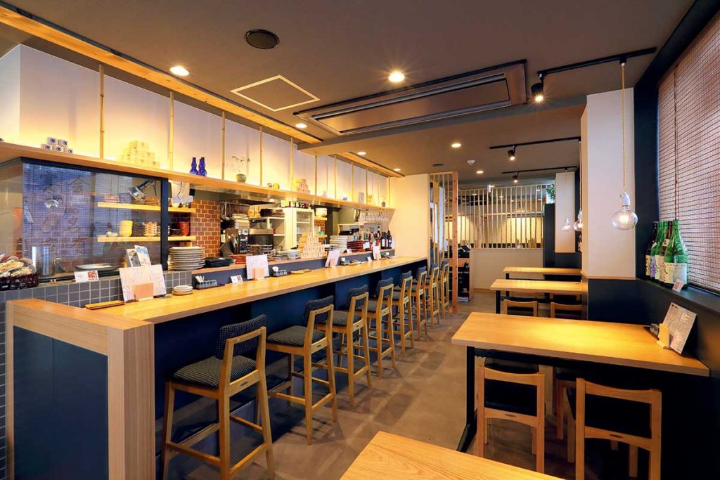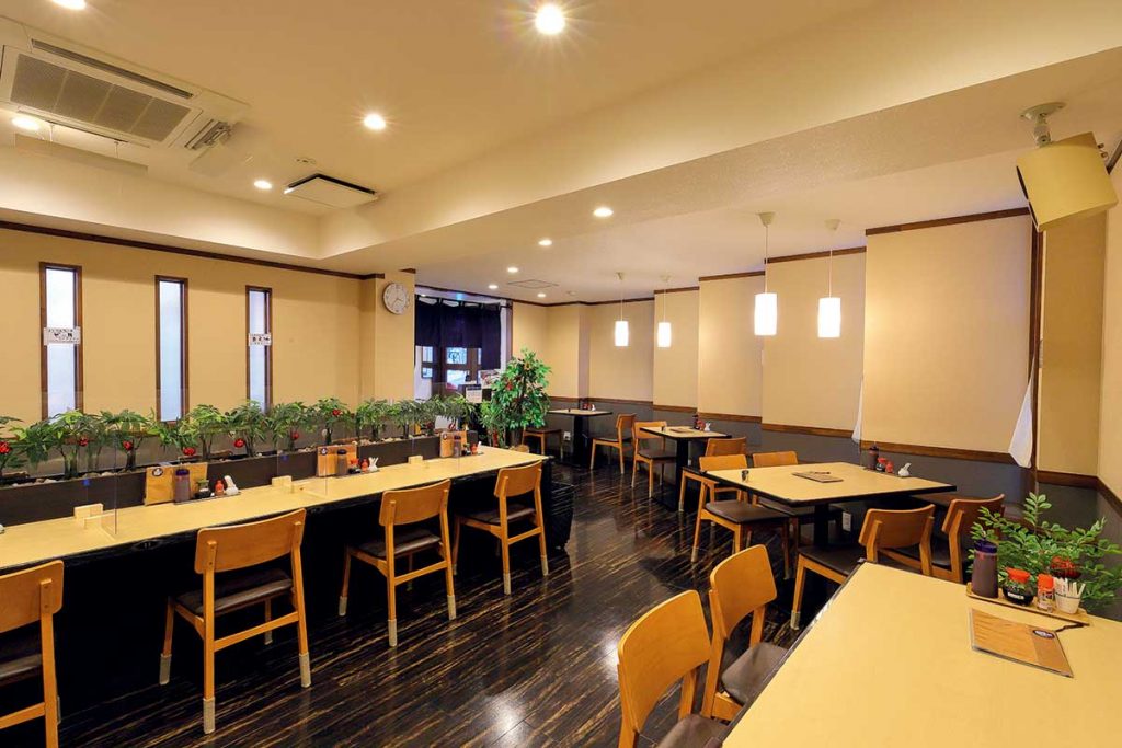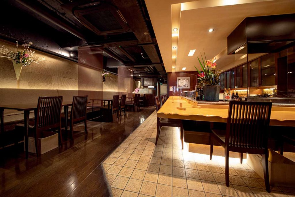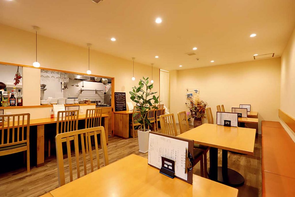武田さんの仕事ぶりを間近に見られるカウンター席のほか、ゆったりと座れるテーブル席があります
