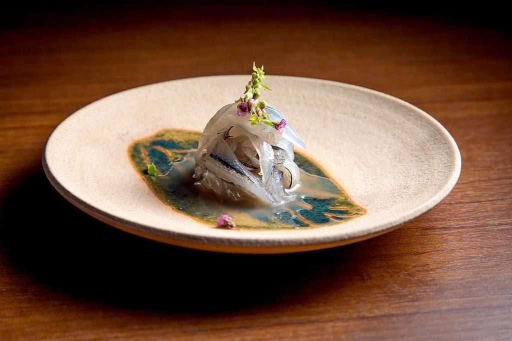 この日「おまかせ」の中の一品として登場した、鮮度の良いさよりを丁寧に昆布で締めたひと皿