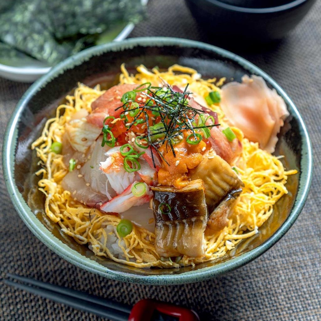 閖上をはじめ新鮮なネタが12種類ものった「閖上海鮮ちらし」(3,300円)※内容はその日によって異なる。汁物、香の物付
