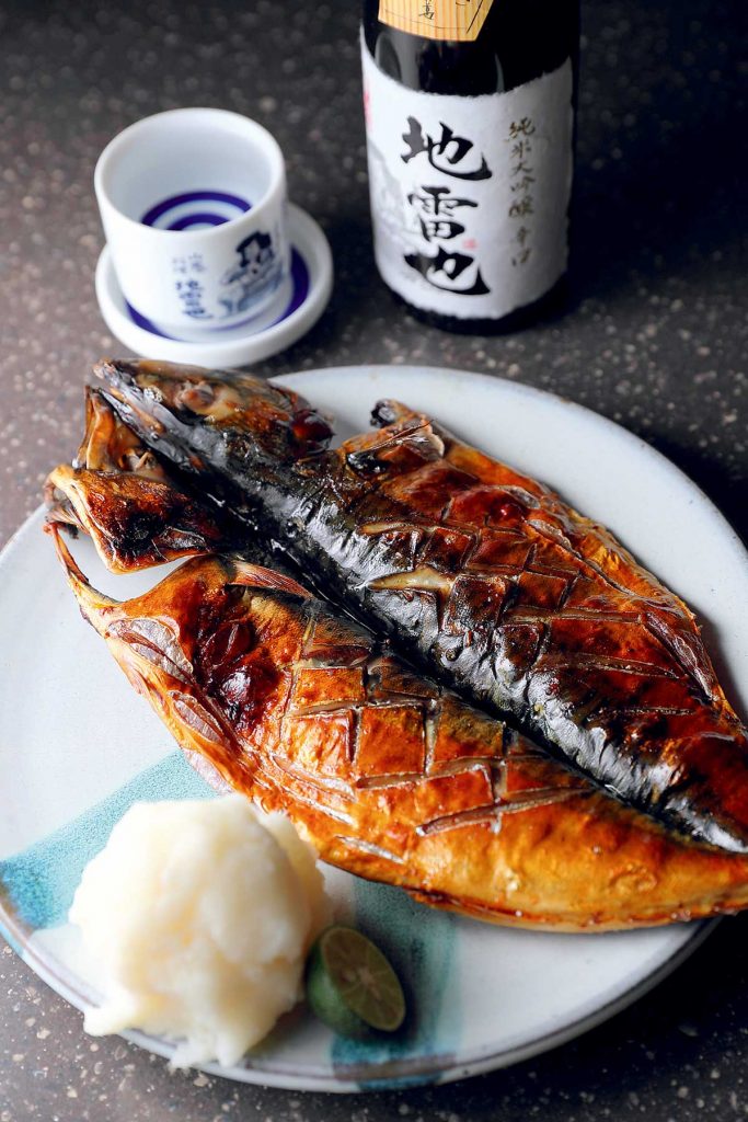 「金華サバ炭火焼」(1,980円※価格変更の可能性あり)。大崎市の『新澤醸造店』が醸す、店オリジナルの日本酒と合わせて召し上がれ