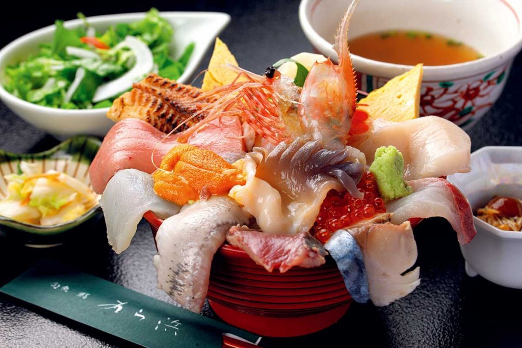 ウニやイクラ、アナゴ、マグロ、エビに加え、季節の貝類や白身魚など計13種類のネタをのせた「漁師丼」(2,860円)