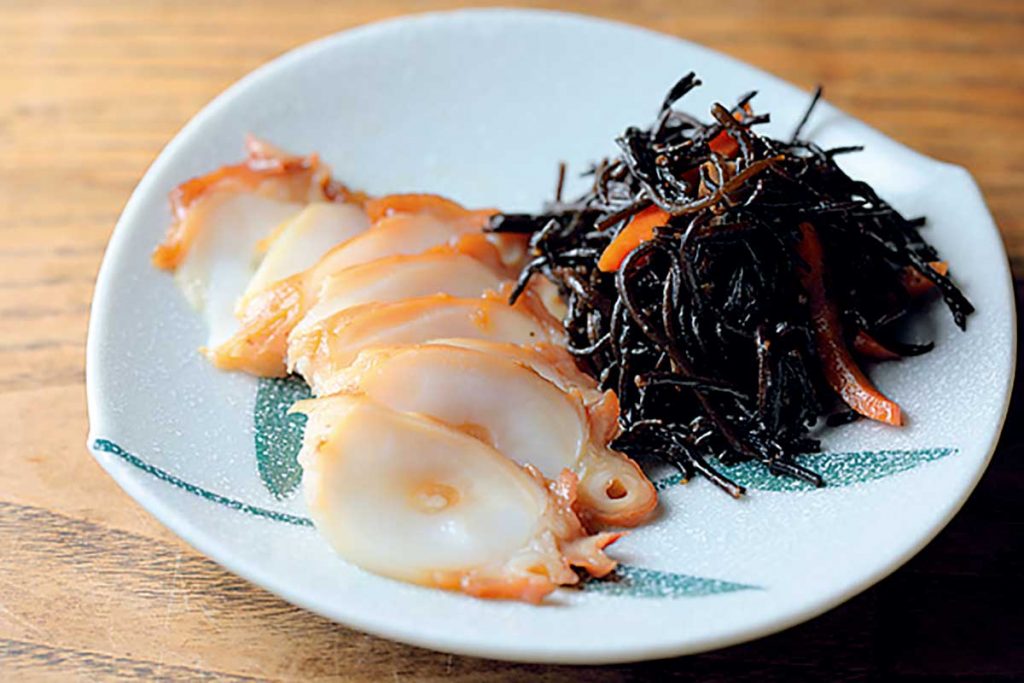 タコを焼き、醤油とみりんに漬けた郷土料理「タコ刺し」に、同じ海で採れたヒジキを添えて(658円)