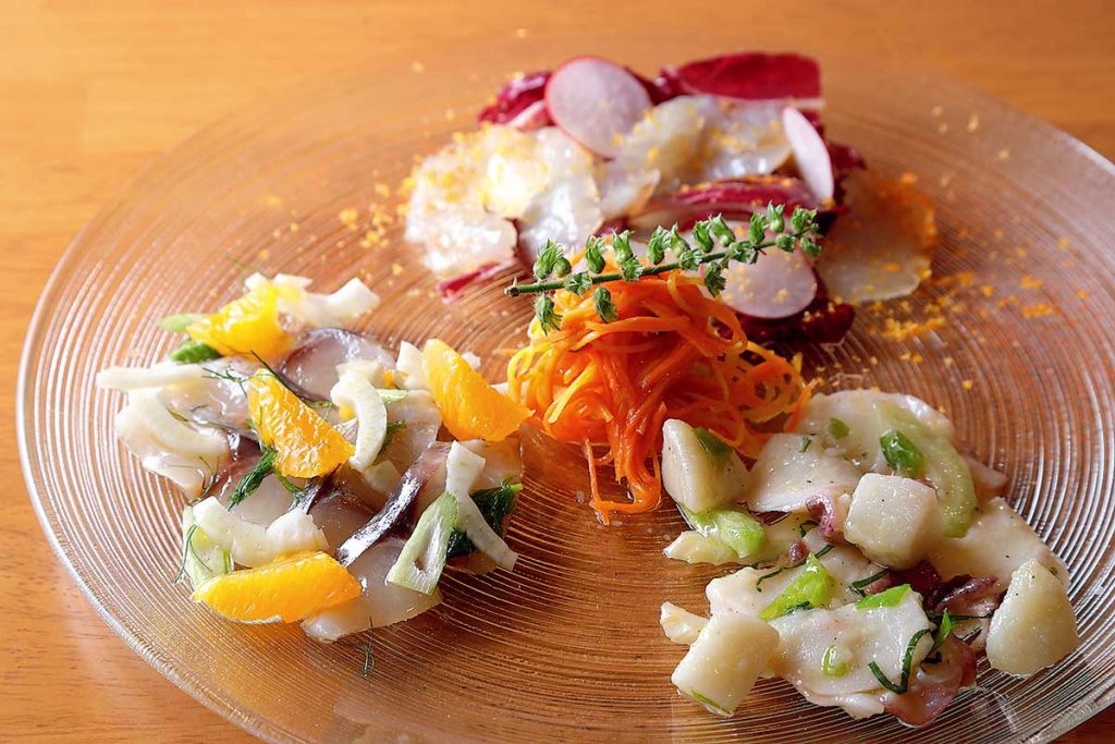 “イタリア風のお刺身盛合せ”のイメージだという「カルパッチョ盛合せ」は、3種くらいで1,280円~