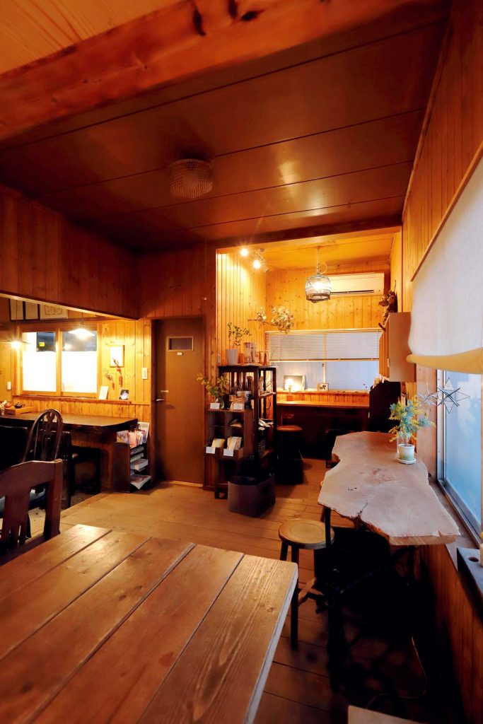 木を基調とした居心地抜群の店内。遠刈田温泉街のバス停のすぐそばにあり、温泉を楽しんだ後の休憩にもぴったりですよ