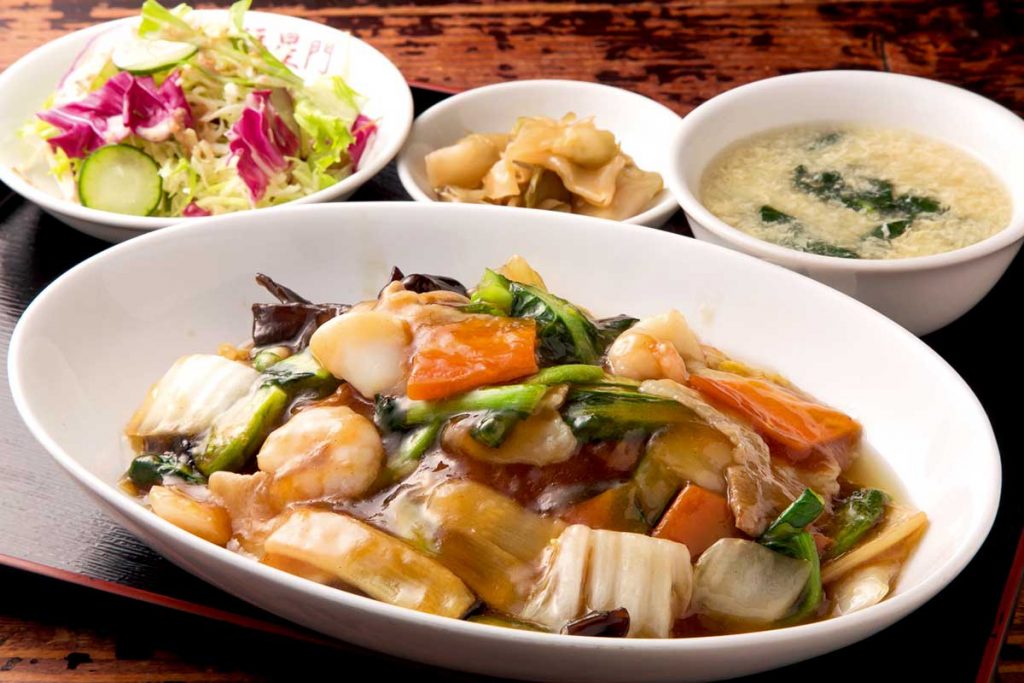 料理が出来上がるスピードの速さに定評がある『福星門』。提供の早さから、昼時はサラリーマンでにぎわいを見せる一軒です。こちらの「XO醤海老焼きそば」は、海老と野菜がたっぷり入ったひと品。ピリ辛の自家製XO醤が味の決め手です。ワンランク上の焼きそばをお腹いっぱい味わってくださいね。