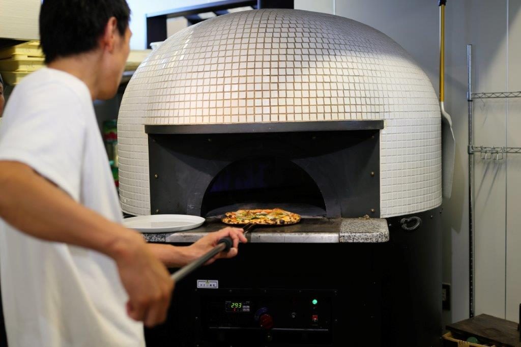 注文カウンターからは、石窯で豪快にピザを焼き上げる様子が見られることも(撮影/山口晃)