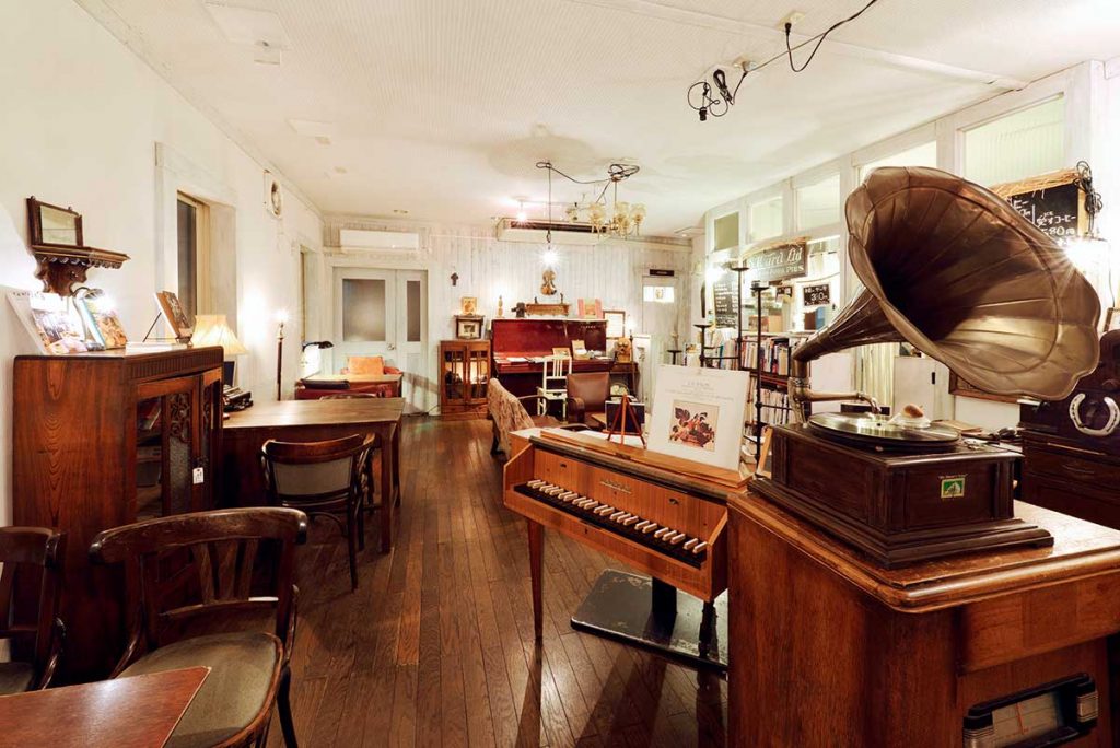 ゆるやかな時間が流れる空間。蓄音機の視聴もできます(100円~)