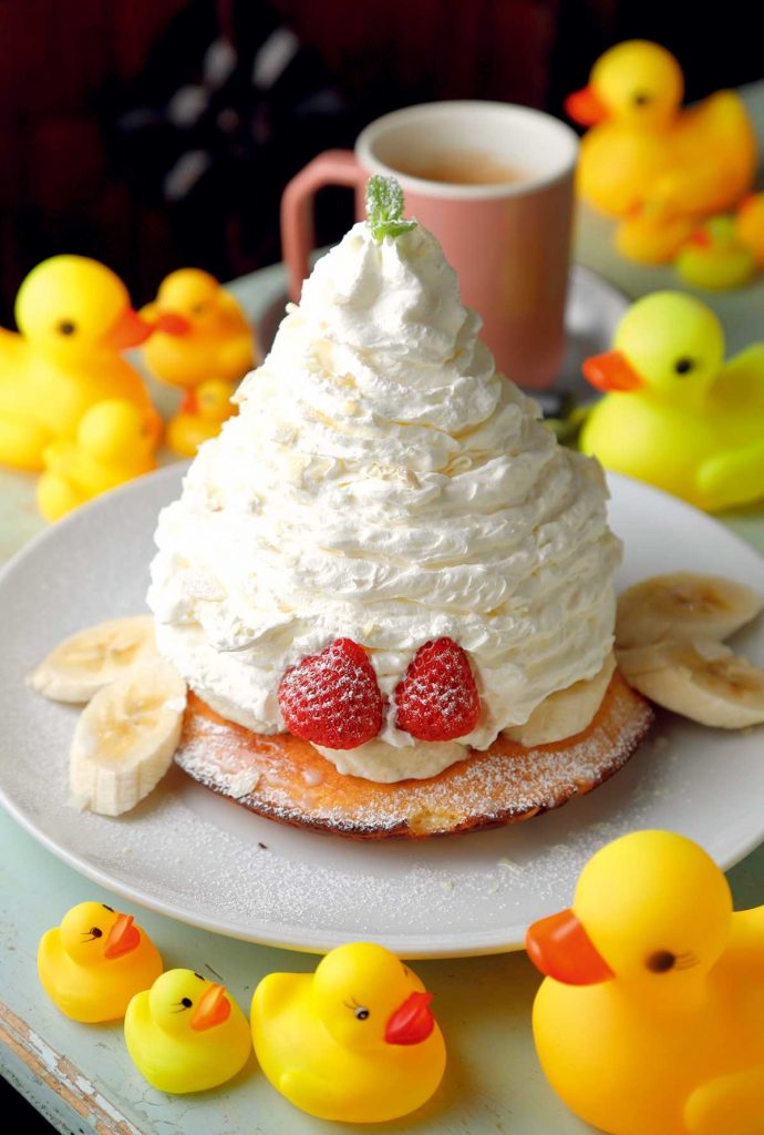 パンケーキ「いちご&バナナ マウンテンクリーム」(1,210円)と「自家製ブレンド」(550円)