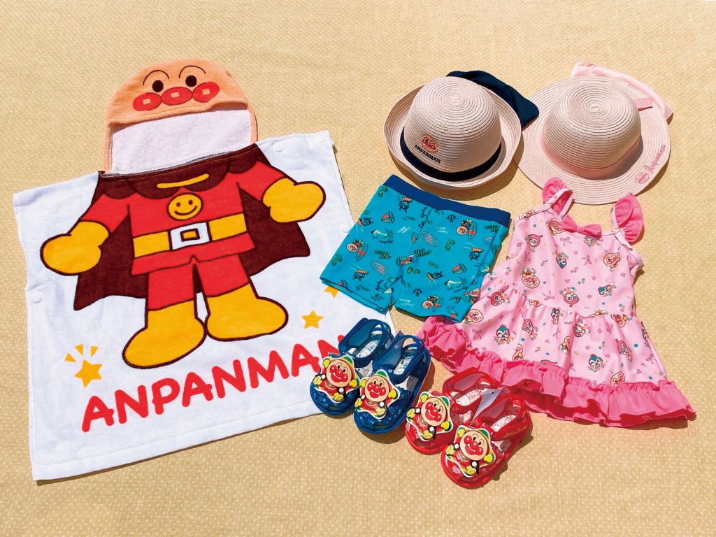 1階ショッピングモール内にあるアンパンマンテラス仙台には、水あそびにピッタリなタオル、水着、帽子、サンダルなどのアイテムが揃っています。
