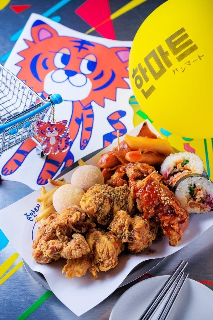 「ヤンニョムチキン」など韓国の定番&流行フード7種を盛り合わせた「ハンザワセット」(1人前1,649円。注文は2人前~。写真は2人前)
