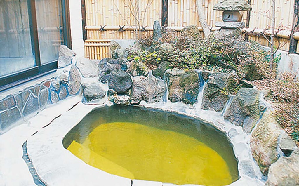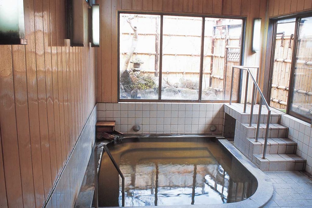 屋号は江戸末期に新潟からこの地に移り住んだことに由来。2つの源泉を持つ老舗旅館です。「不動の湯」は肌がすべすべになる単純硫黄泉で、神経痛や関節痛、打ち身、捻挫などにも効果的だそう。「越後の湯」は含硫黄-ナトリウム-炭酸水素塩泉で、皮膚病や婦人病、糖尿病などに効能があるとか。浴室は毎日19時に男女交替になります。日帰りで入浴できる源泉は一つなので、両方入りたい人は宿泊してゆっくり楽しむのがおすすめですよ。