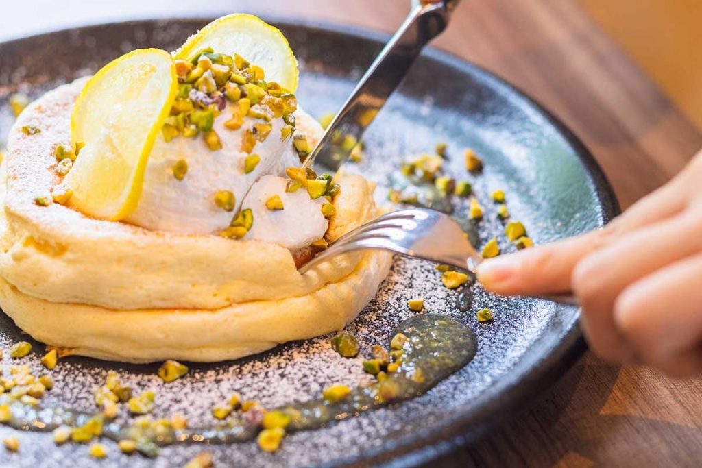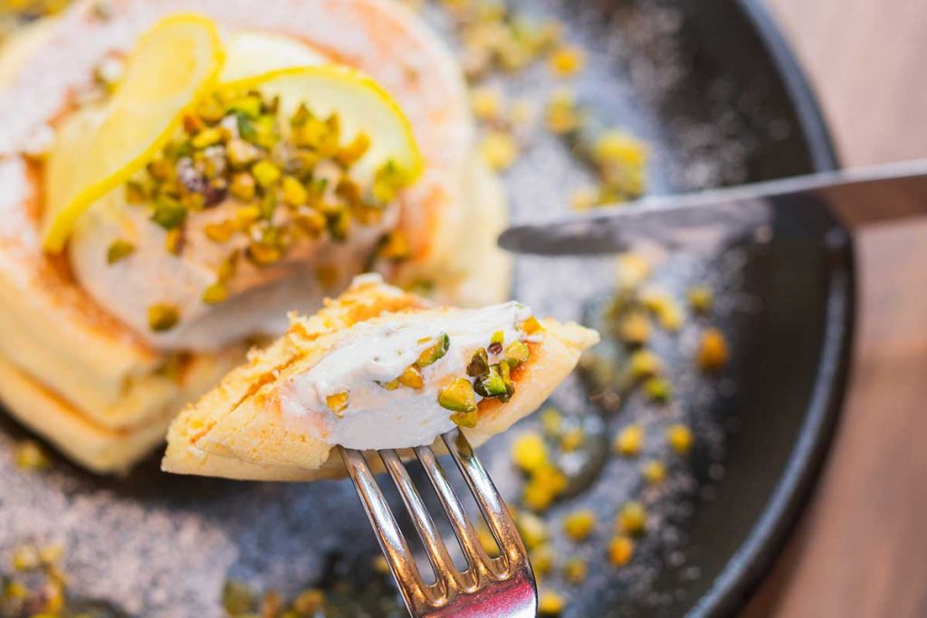 さらにもうひとつのおすすめが、「レモンとピスタチオのリコッタパンケーキ」です。