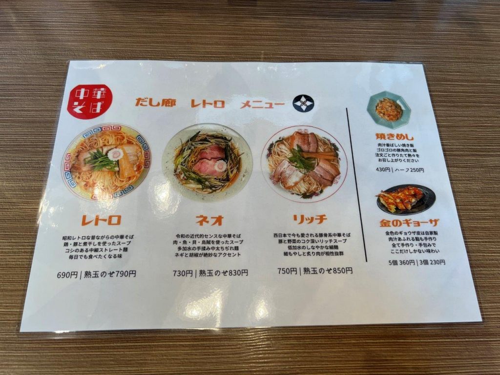 メニューはラーメンが3種類。