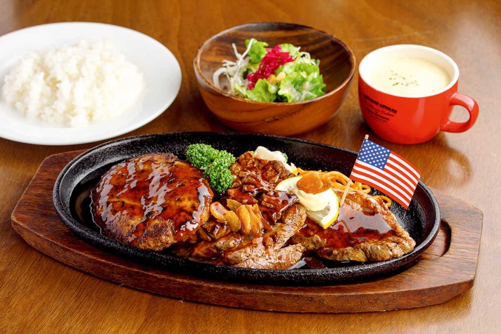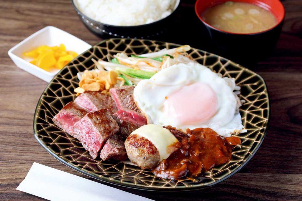 サーロイン、ヒレ、ハンバーグがひと皿に「ヒバチトリプル(470g)」(2,980円)