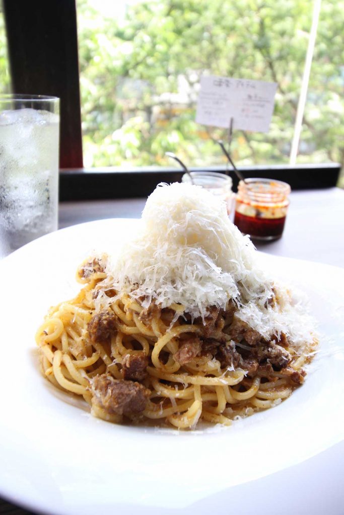 『大人焼肉Momo』の店内で、ランチタイムだけ営業しているボロネーゼ専門店。これ“しか”ない、という意味の店名通り、メニューは潔く1種のみ!