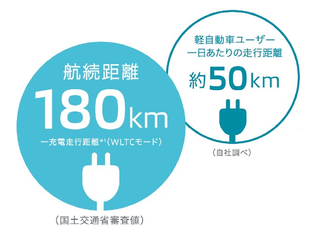 それに対して「eK クロス EV」の航続距離は180kmなので、安心して日常使いできるのがうれしいポイントです。