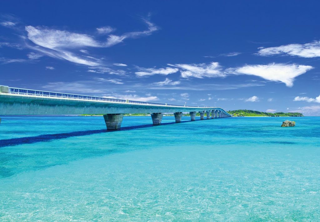 宮古島本島と伊良部島を結ぶ橋。全長3540mで、無料で渡れる橋としては日本一の長さです
