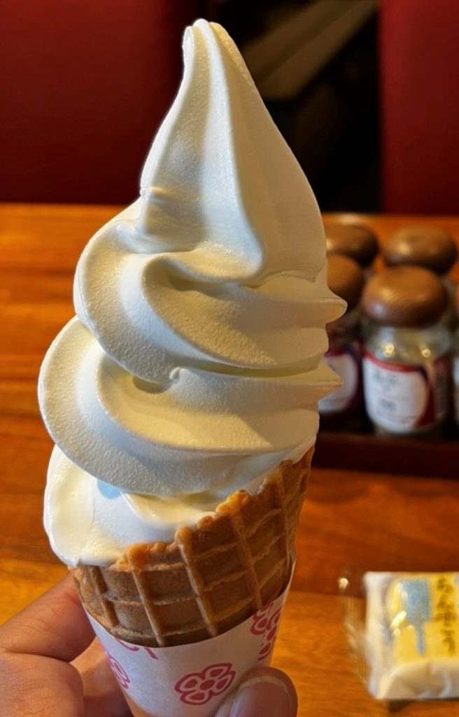 宮古島の名物"雪塩”を使った「雪塩ソフトクリーム」。『雪塩ミュージアム』では、数種類の雪塩をかけて味変も楽しめます