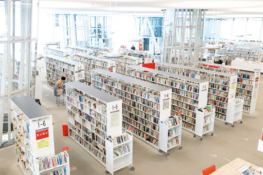 3、4階にある図書館。2階にはキッズコーナーもあり、児童書なども揃っていますよ
