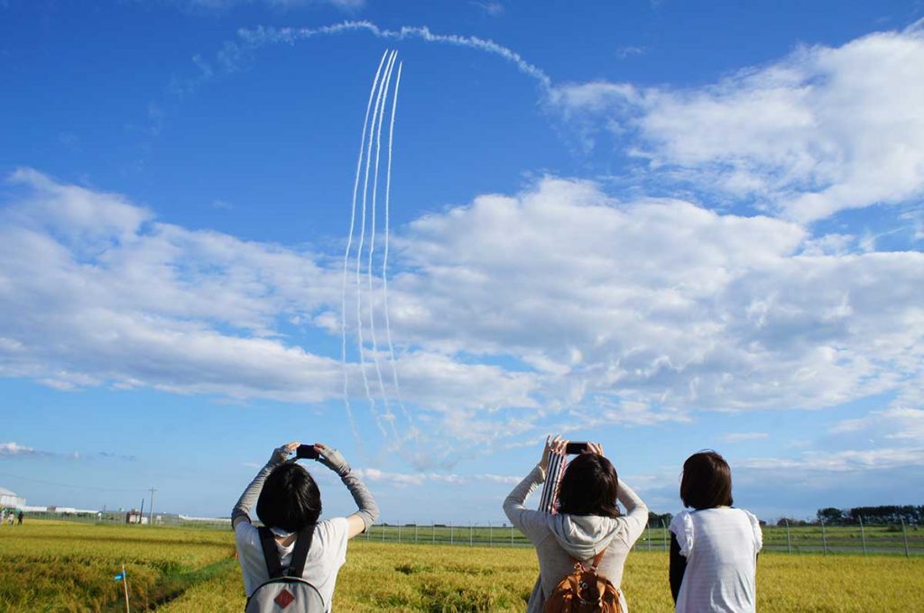 大空を舞台に行われる、迫力あふれるアクロバット飛行に、ブルーインパルスJr.の展示走行やF2戦闘機の展示など、盛りだくさんの内容は航空ファン必見。