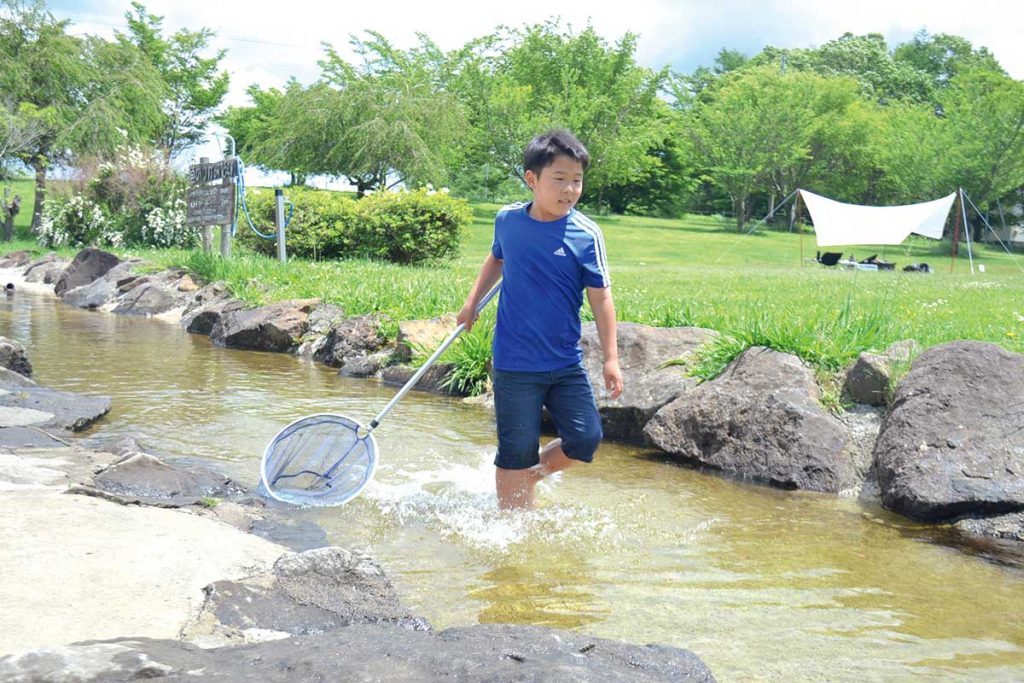 キッズに人気の川遊び。渓流を眺めながらのキャンプは、大自然の魅力をたっぷりと感じられますよ