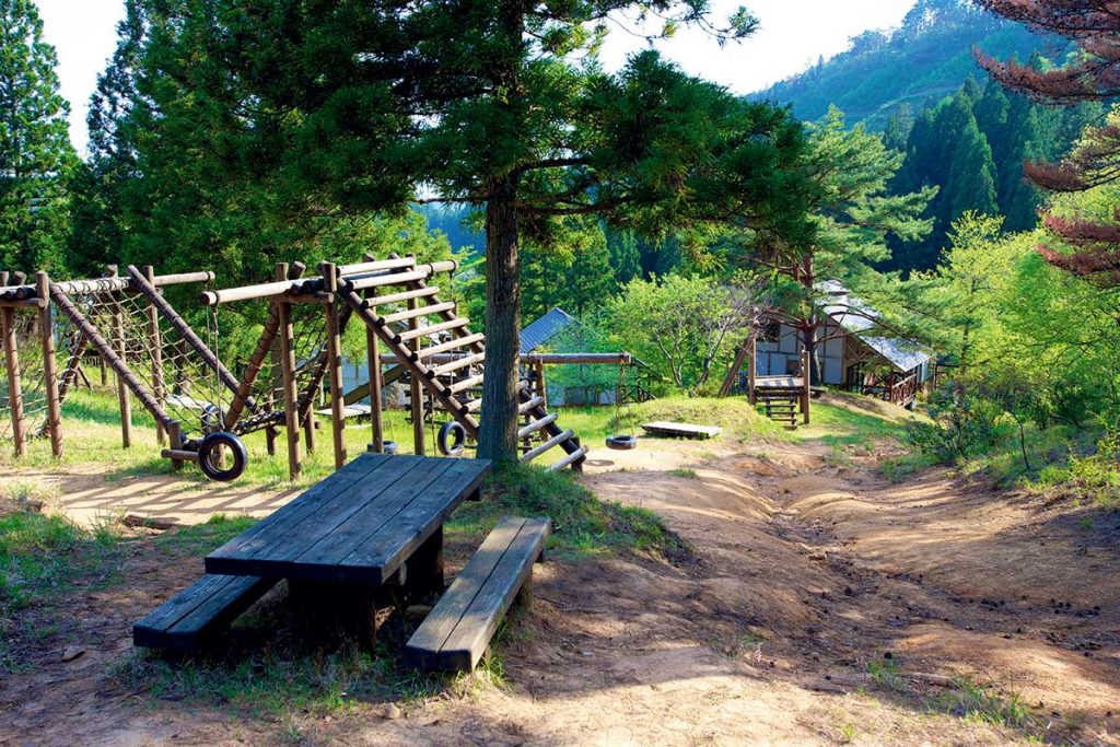 季節の移ろいを楽しめる山間の小さなキャンプ場。フリーサイト、オートキャンプサイト、コテージが用意されています。初心者からベテランキャンパーまで、好みのスタイルに合わせて利用できますよ。木製遊具が点在する「ちびっこ広場」では、子どもたちがのびのびと身体を動かして遊べるのが魅力。大人は、併設する「森林セラピーロード」で森林浴を満喫するのもおすすめです。