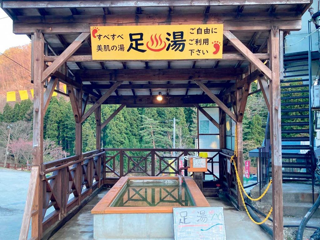 施設内には足湯があり、無料で何度も利用可能。川のせせらぎや星空をお供に、足先からポカポカとあたたまって