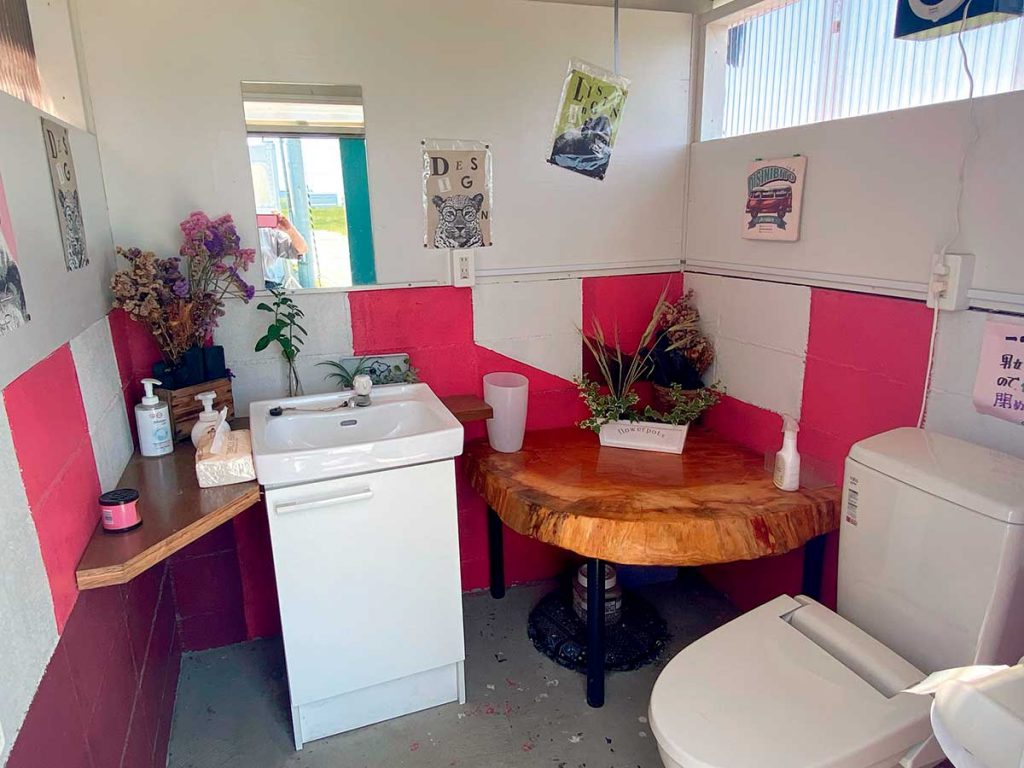 炊事場、トイレ、シャワー室が集合したサニタリー棟。ウォシュレット付きトイレとお湯も使えます