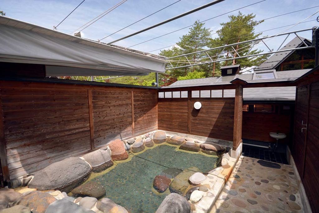 サニタリー棟にあるキャンパー専用露天風呂「鹿乙の湯」。宿泊利用者は17時から22時まで何度でも入浴できます