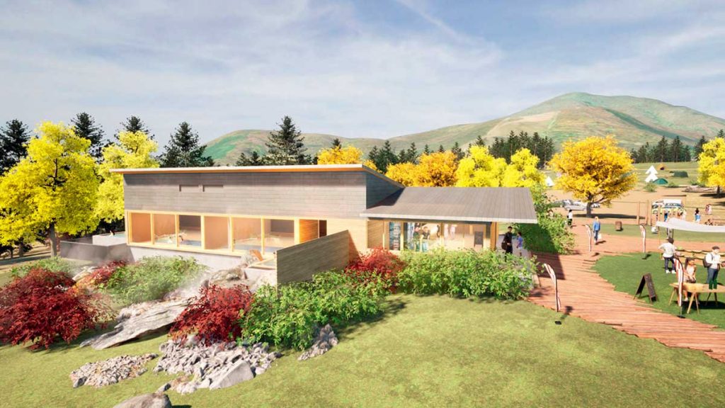 天然温泉の温浴施設もオープン予定。ワーケーションに最適なモダンなコテージも人気の予感