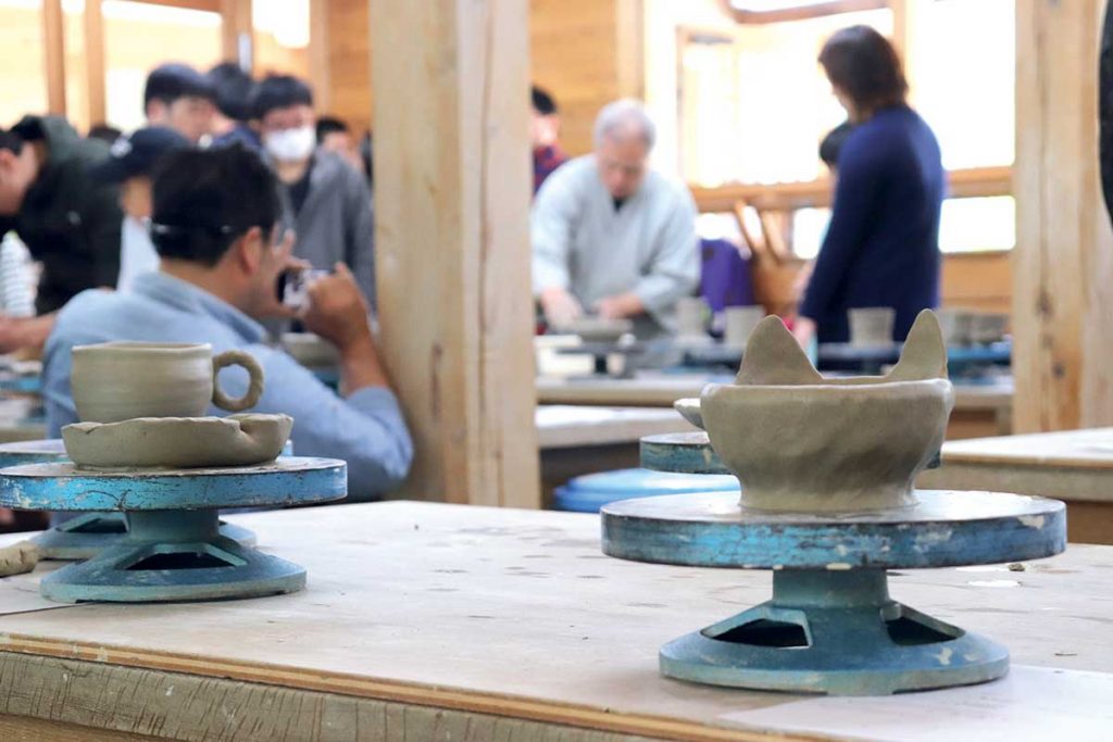 キャンプサイトのほど近くにある『郷土文化保存伝承館』では、陶芸体験もできます