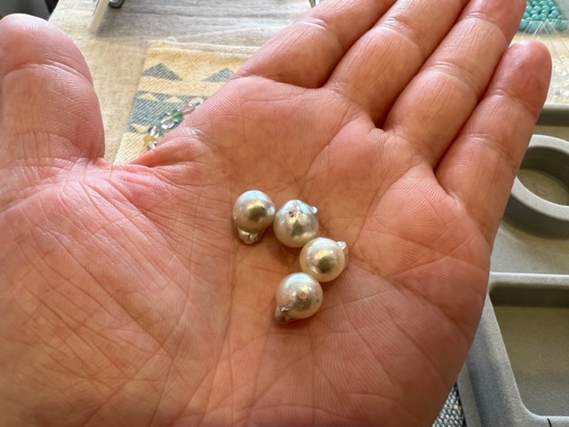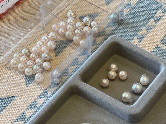 まずは真珠をひとつ選びます。さんざん悩んで、わたしはバロックパールのちょっと色味が深いものをチョイス!