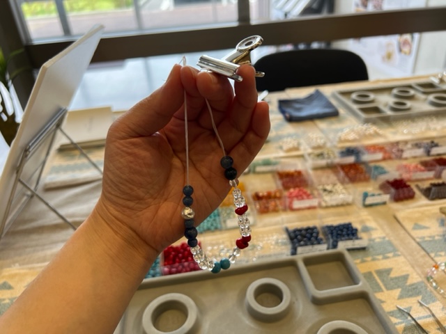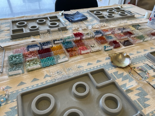 ということで、あれこれ目移りしてしまうこと間違いなしのマルシェブースだけでも満足度が高いんですが、この日は宇和島市でパールジュエリーブランド『miu(ミウ)』を営む暁工房さんによるワークショップが開催されているということで、ブレスレット作り体験に参加してきました。