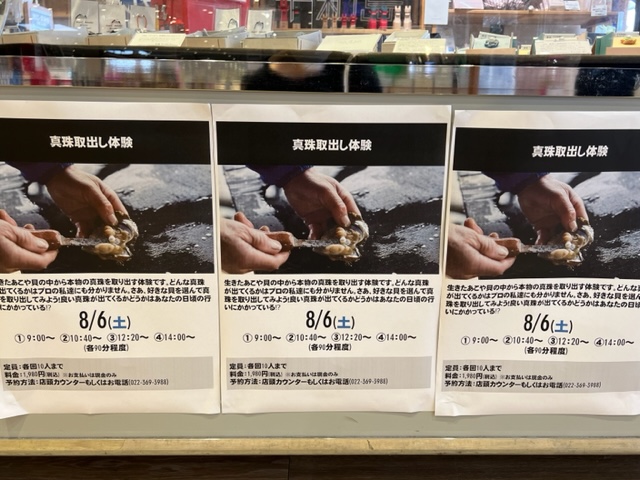 ちなみに荒井店では8月6日(土)に「真珠取り出し体験」があるそうです!