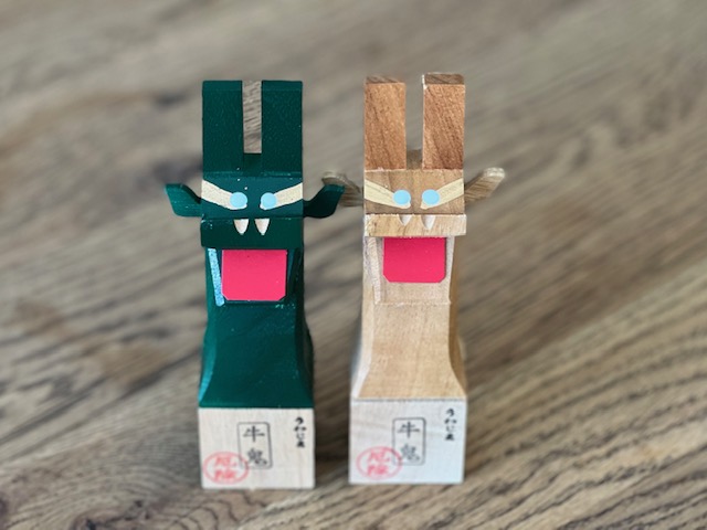 宇和島の伝統文化「牛鬼」も2つゲット。最初は赤い子を手に取っていたのですが、緑が健康成就と知り、即座に持ち替えてしまいました。健康大事。