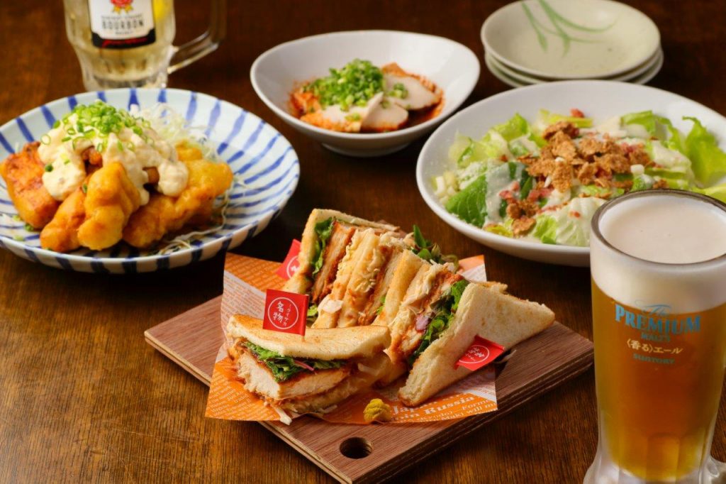 有機野菜をたっぷり盛り込んだサラダや、居酒屋では珍しいサンドイッチなど豊富なメニューが揃う