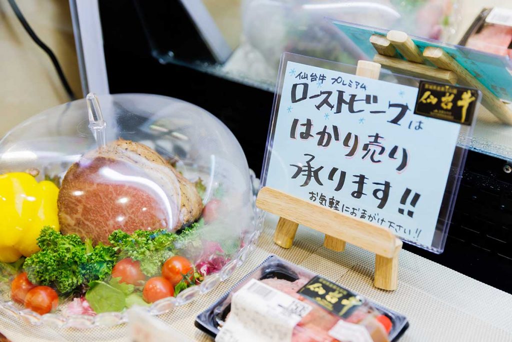 昭和53年の「仙台牛銘柄推進協議会」発足当初から「仙台牛販売指定店」として認可されており、仙台牛の取り扱いにおいて県内屈指の知識と実力を持つ精肉店として知られています。