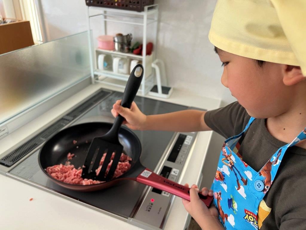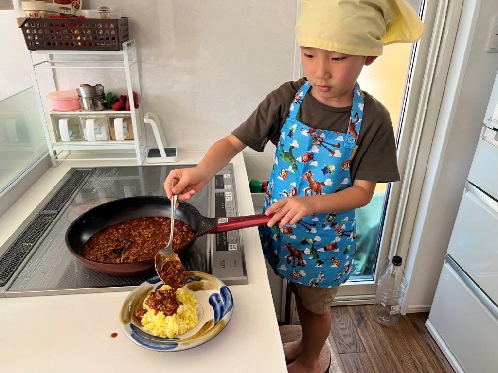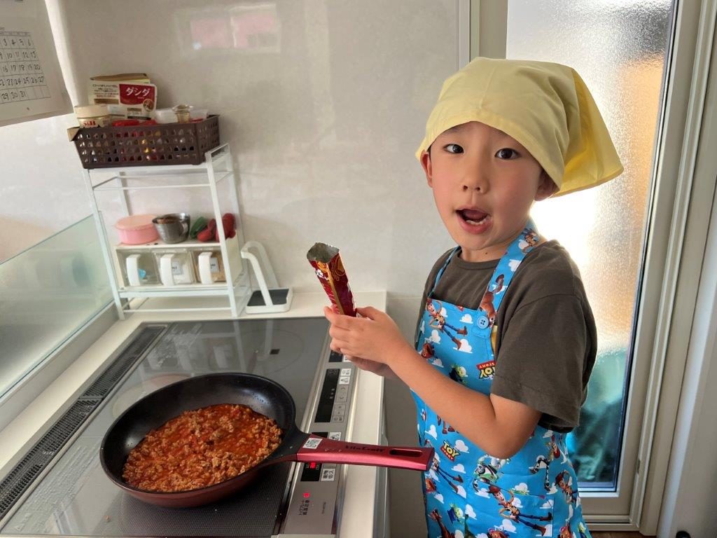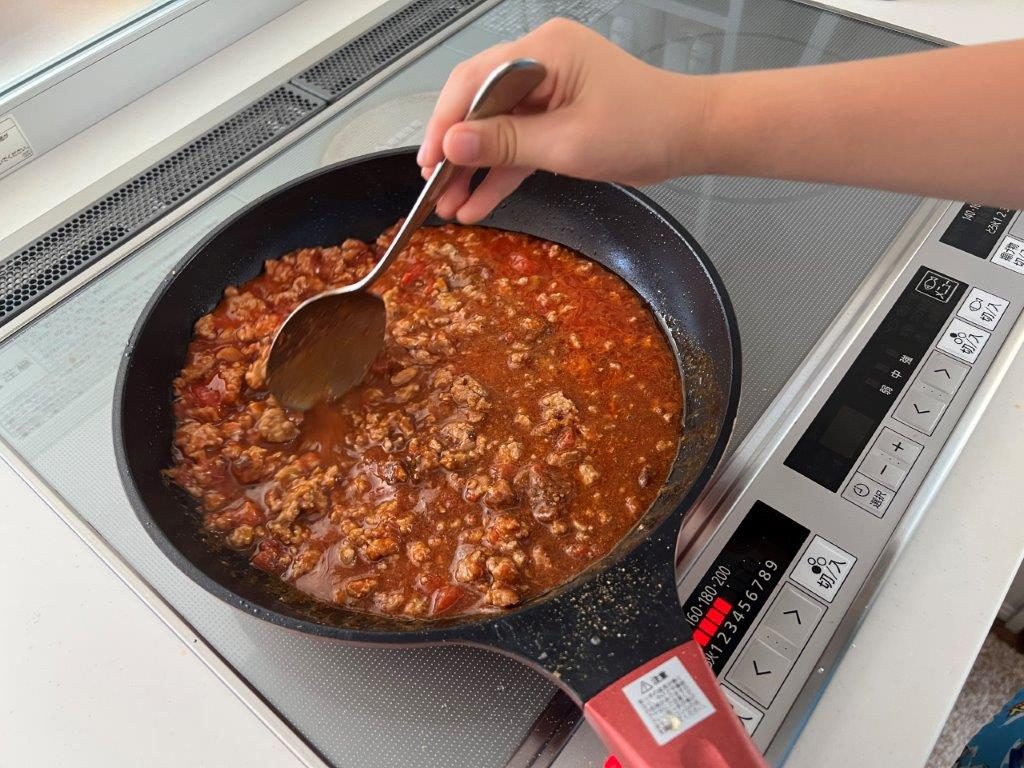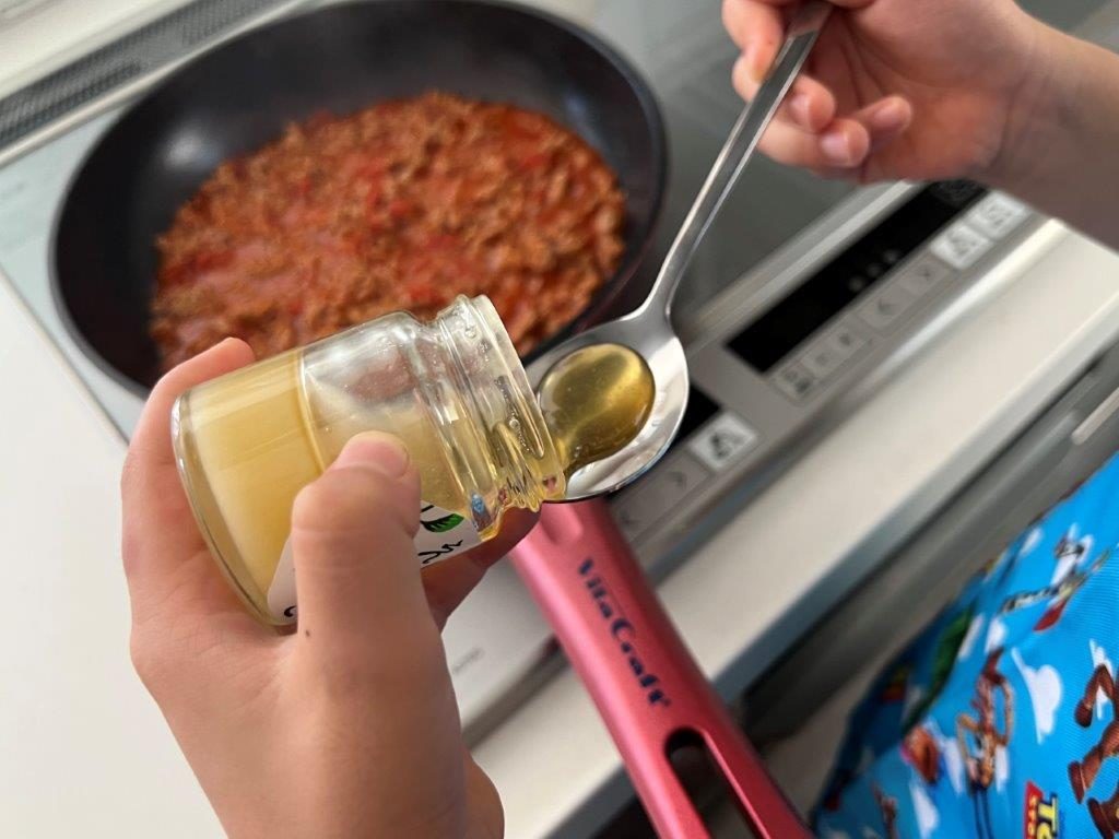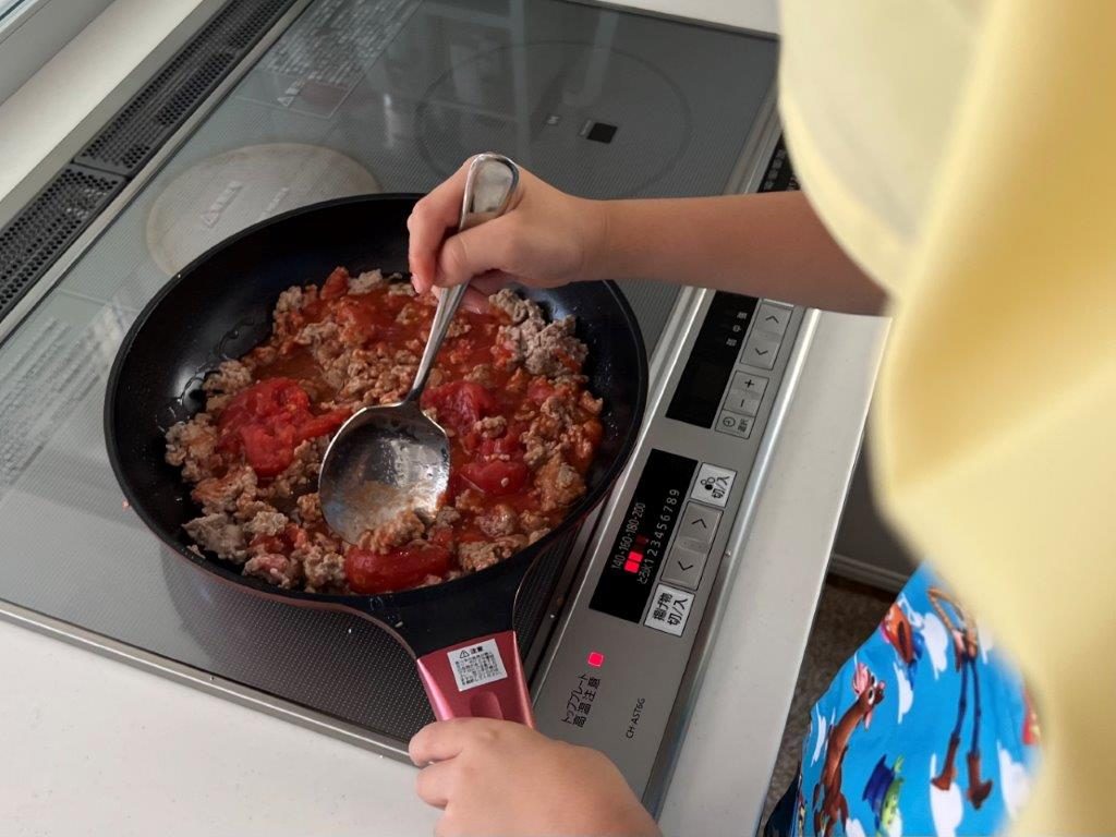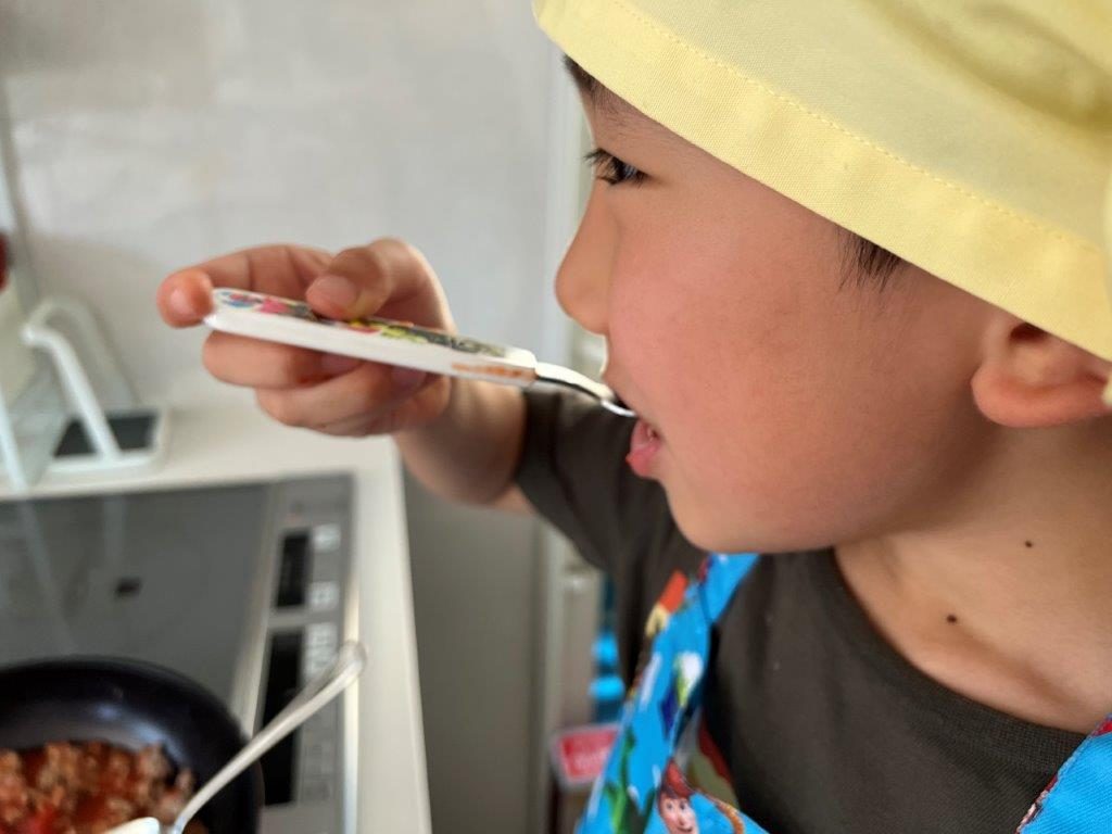しばし味見。「もうおいしい!これで完成でいいんじゃない?」と小1男児、すでに大満足の様子。もうちょっとがんばろうね