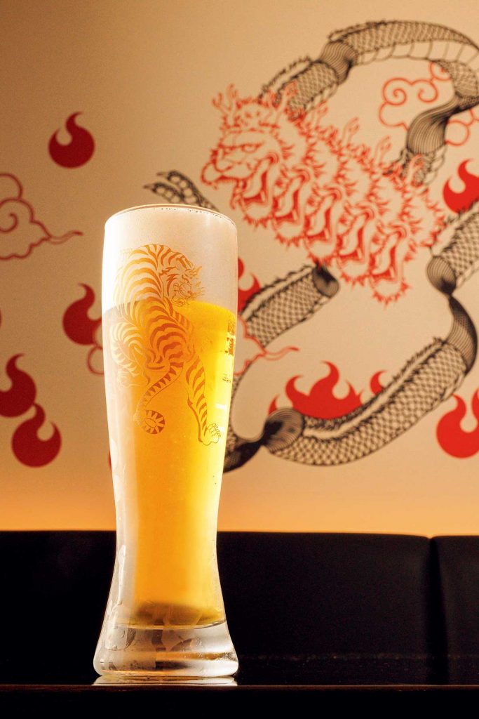 あっさりスッキリの爽やかな味わいで「火鍋」によく合う「タイガービール生」(880円)。生で飲めるのは仙台では珍しい
