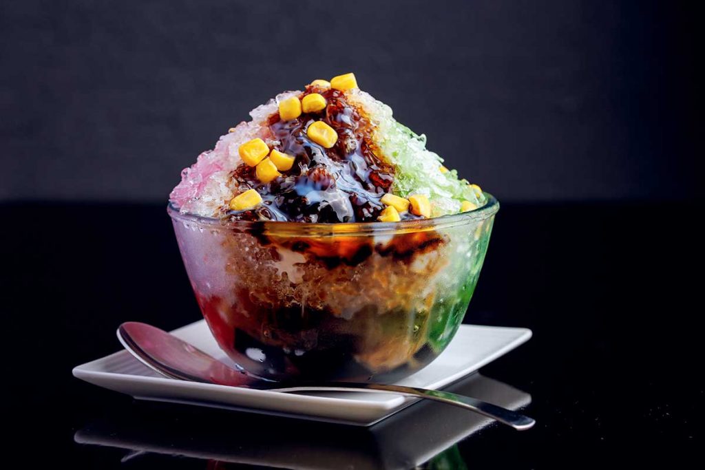シンガポールの屋台でよく食べられているデザート「アイスカチャン」(880円)。カチャンは豆の意味で、茹で小豆などが入っているんです